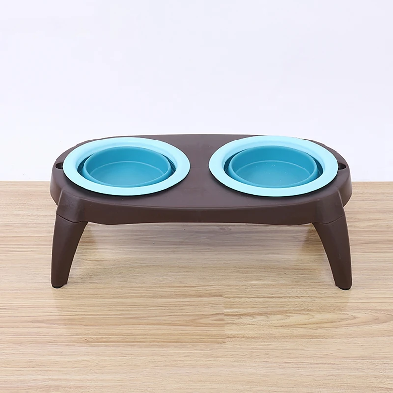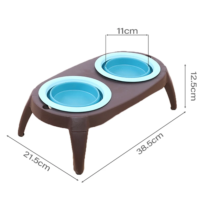 Hot Sale Folding Double Dog Bowl with Non-Skid Silicone Mat Pet Feeder Puppy Cat Food Container Bow
