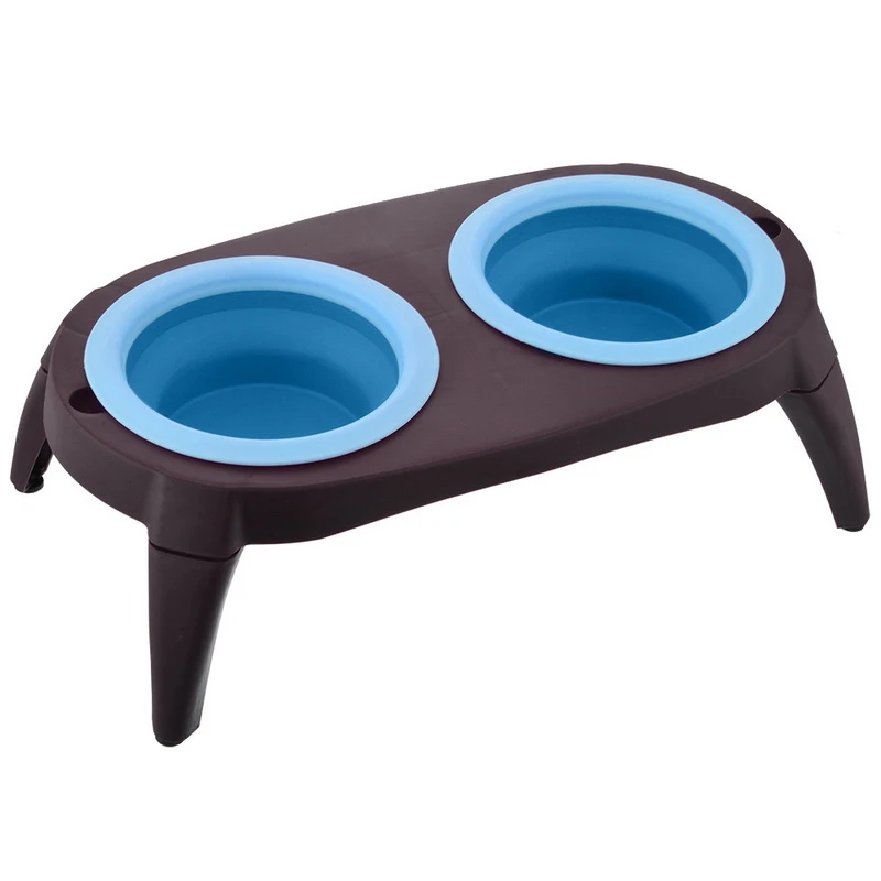 ORIGINAL Hot Sale Folding Double Dog Bowl with Non-Skid Silicone Mat Pet Feeder Puppy Cat Food Container Bow